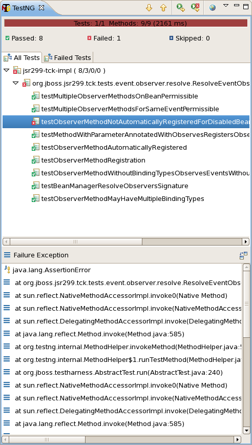 You have now mastered running the CDI TCK against Weld using both Maven and within Eclipse. Now you're likely interested in how to debug a test so that you can efficiently investigate test failures.