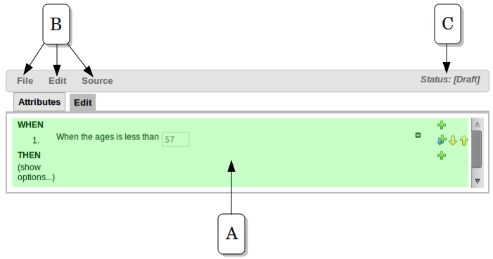 The Asset Editor is the principle component of Guvnor's User-Interface. It consists of two tabs:-