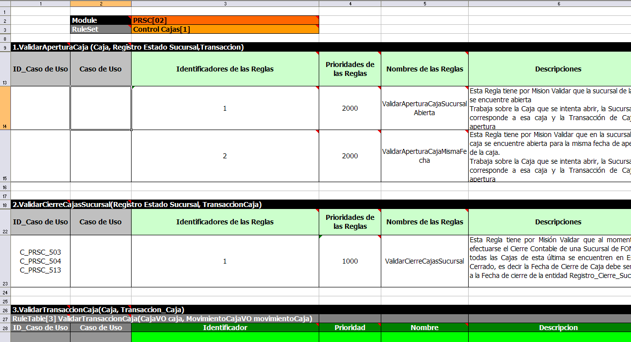 RuleTable. These areas represent the actual decision tables, each area resulting