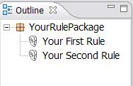 The editor has an outline view that is kept in sync with the structure of the rules; it is updated on save. This provides a quick way of navigating around rules by name, even in a file which may have hundreds of rules. The items are sorted alphabetically by default.