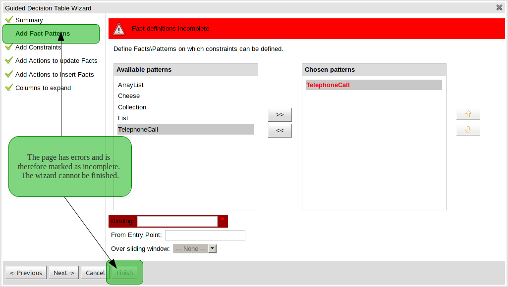 When Working Sets are activated, only the Fact Types allowed by them could be used when inserting new Patterns or Actions. The Patterns and Actions already present in the rule that contain prohibited Fact Types are marked as read only. Take a look at the next screen shots comparing the Guided Editor panel with and without Working Sets