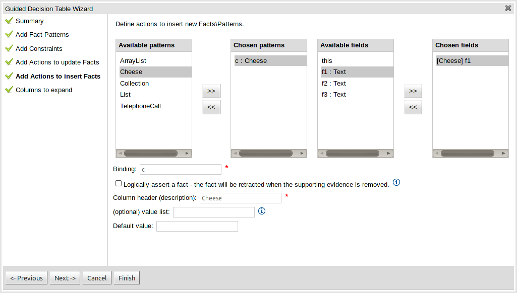 An Expression - this will let you use an Expression Builder to build up a full mvel expression. (At the moment only basic expressions are supported)