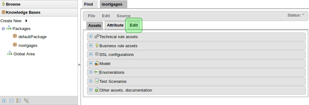 Finally you would "build" a package. Any errors caught are then shown at this point. If the build was successful, then you will have the option to create a snapshot for deployment. You can also view the DRL that this package results in.