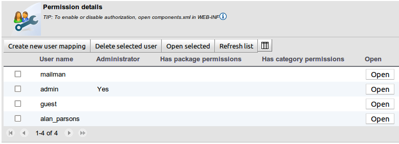 To add or remove a permission to a user, select a user and click on the button Open. Click on the green + to add a permission type: