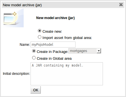 Enter a suitable name and ensure the package you defined above is selected in the "Create in package" dropdown.