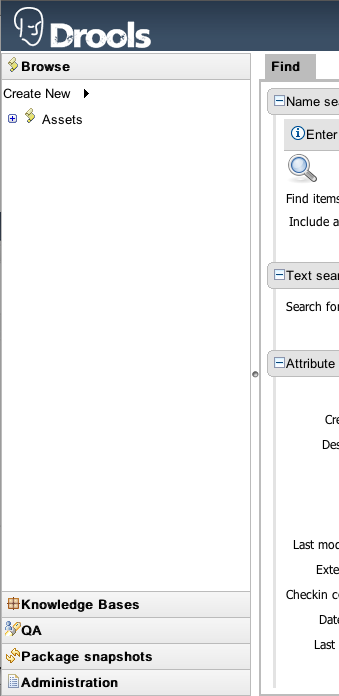 Select the "Knowledge Bases" section of the menu-bar on the left-hand side of the Guvnor main window.