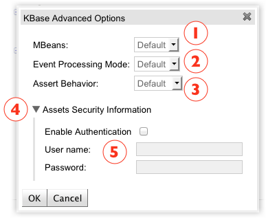 Assets Security Information: This section holds any security related configuration to remotely access the guvnor repository.