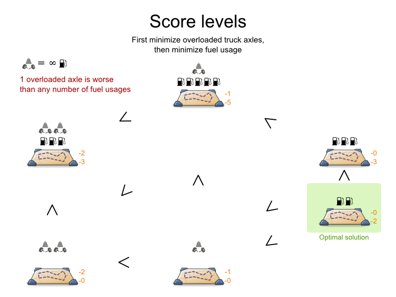 OptaPlanner supports several optimization algorithms to efficiently wade through that incredibly large number of possible solutions. Depending on the use case, some optimization algorithms perform better than others, but it's impossible to tell in advance. With Planner, it is easy to switch the optimization algorithm, by changing the solver configuration in a few lines of XML or code.