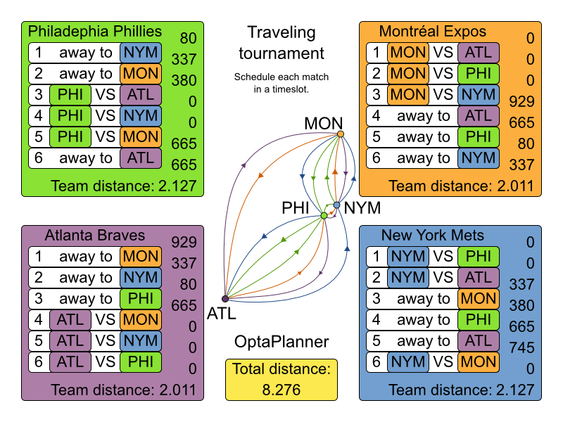 OptaPlanner helps normal JavaTM programmers solve constraint satisfaction problems efficiently. Under the hood, it combines optimization heuristics and metaheuristics with very efficient score calculation.