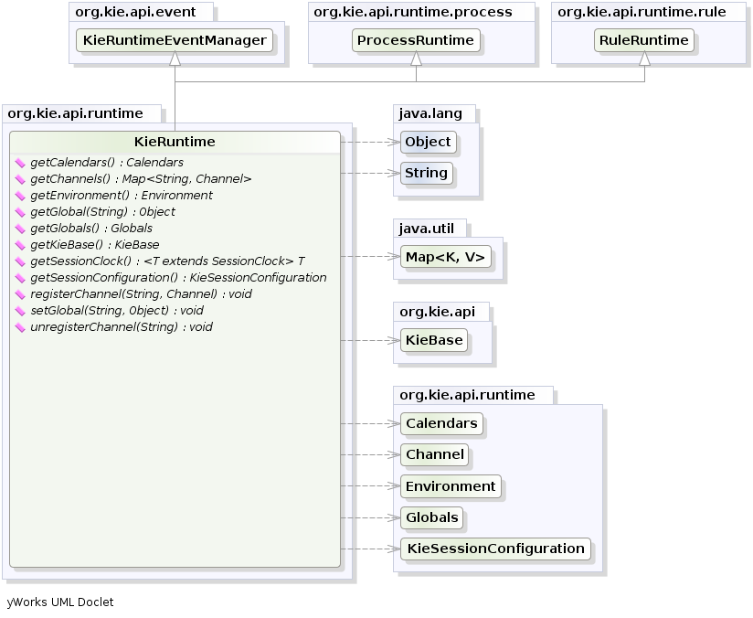 Conversely the KieSession stores and executes on the runtime data. It is created from the KieBase or more easily can be created directly from the KieContainer if it has been defined in the kmodule.xml file