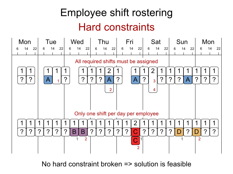 The problem is defined by Wikipedia. It is one of the most intensively studied problems in computational mathematics. Yet, in the real world, it's often only part of a planning problem, along with other constraints, such as employee shift rostering constraints.