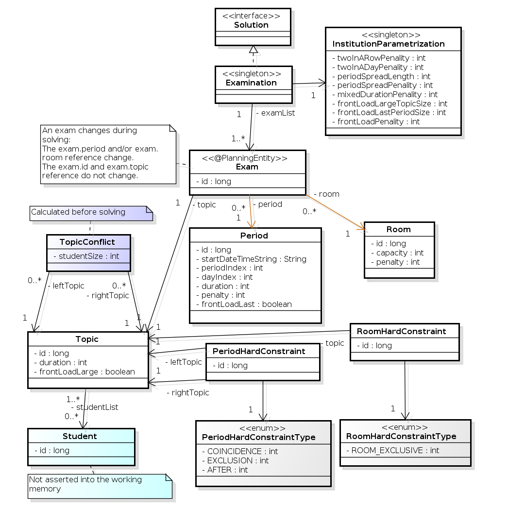 OptaPlanner supports several optimization algorithms to efficiently wade through that incredibly large number of possible solutions. Depending on the use case, some optimization algorithms perform better than others, but it's impossible to tell in advance. With OptaPlanner, it is easy to switch the optimization algorithm, by changing the solver configuration in a few lines of XML or code.