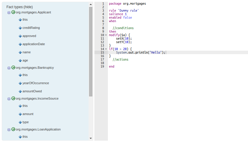 rule "go" salience 10