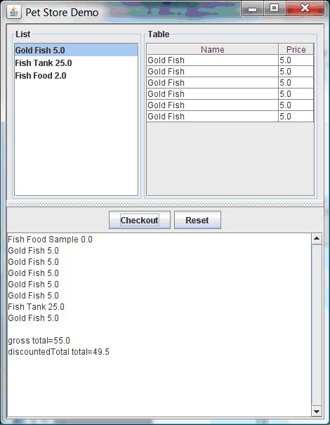 The single class used in this example is very simple. It has two fields: the message, which is a String and the status which can be one of the two integers HELLO or GOODBYE.