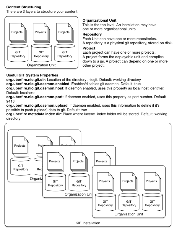 One of the biggest complaints during the 5.x series was the lack of defined methodology for deployment. The mechanism used by Drools and jBPM was very flexible, but it was too flexible. A big focus for 6.0 was streamlining the build, deploy and loading(utilization) aspects of the system. Building and deploying now align with Maven and the utilization is now convention and configuration oriented, instead of programmatic, with sane default to minimise the configuration.