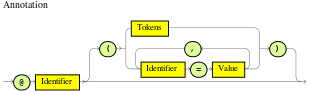 A type definition, written as a Java class name, enclosed in brackets. This part is optional unless the the next part begins with an opening bracket. An empty pair of brackets is valid, too.