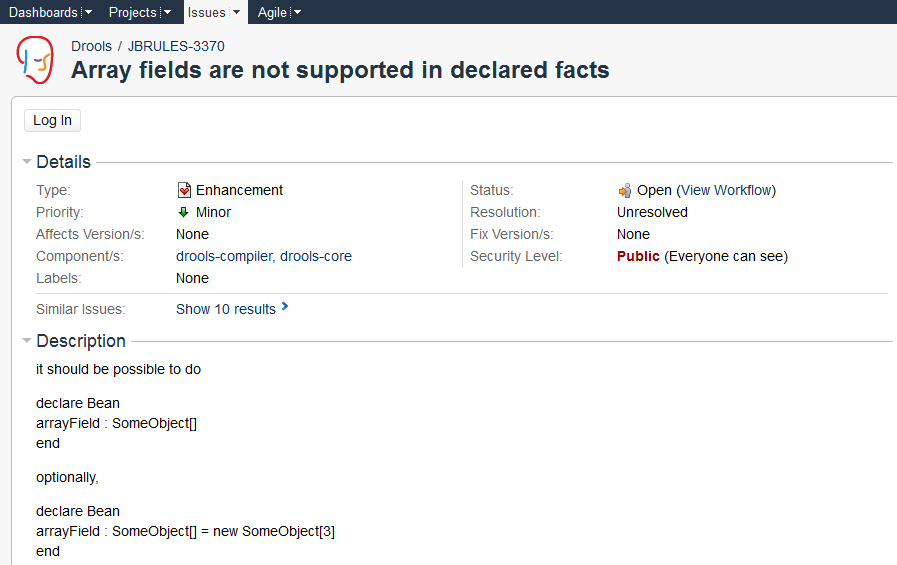 To be able to interact with the core development team you will need to use JIRA, the issue tracker. This ensures that all requests are logged and allocated to a release schedule and all discussions captured in one place. Bug reports, bug fixes, feature requests and feature submissions should all go here. General questions should be undertaken at the mailing lists.