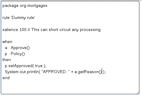 Drools is a business rule management system with a forward-chaining and backward-chaining inference based rules engine, allowing fast and reliable evaluation of business rules and complex event processing. A rule engine is also a fundamental building block to create an expert system which, in artificial intelligence, is a computer system that emulates the decision-making ability of a human expert.