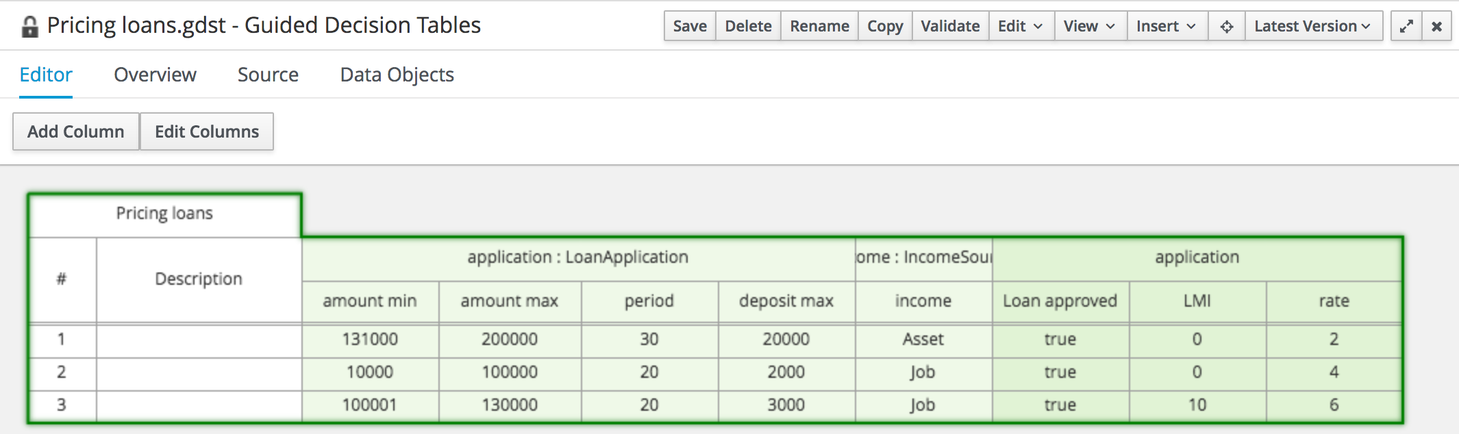 Drools Editors, for rules and supporting assets.