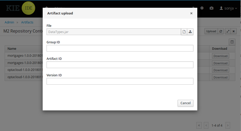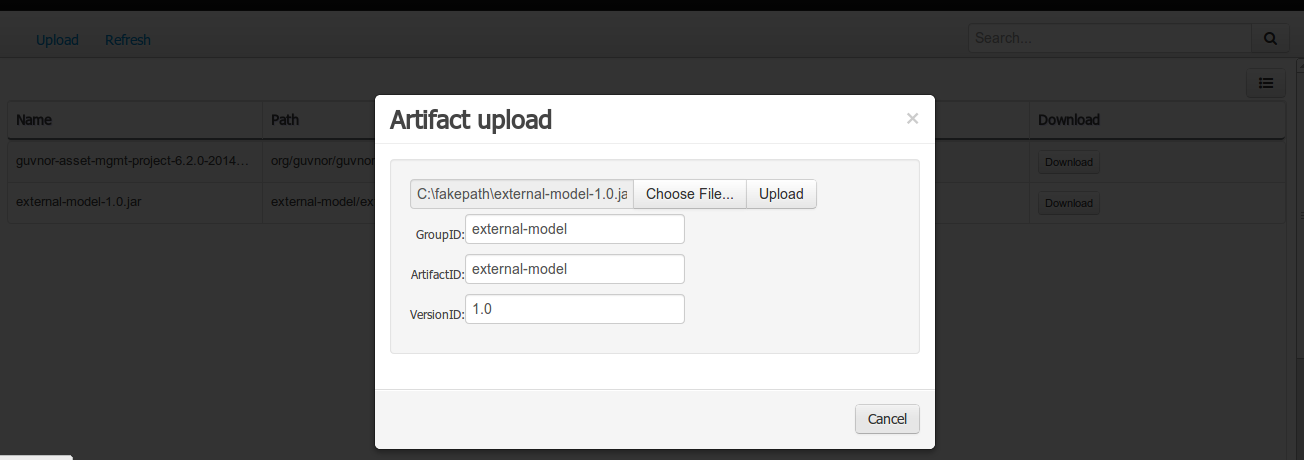 Projects can be built with Maven and installed to the local M2_REPO or remote Maven repositories. Maven is then used to declare and build the classpath of dependencies, for KIE to access.