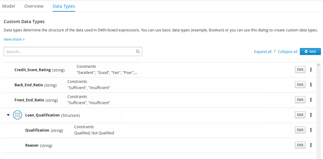 New Data Modeller replaces the declarative Fact Model Editor; bringing authoring of Java classes to the authoring environment. Java classes are packaged into the project and can be used within rules, processes etc and externally in your own applications.