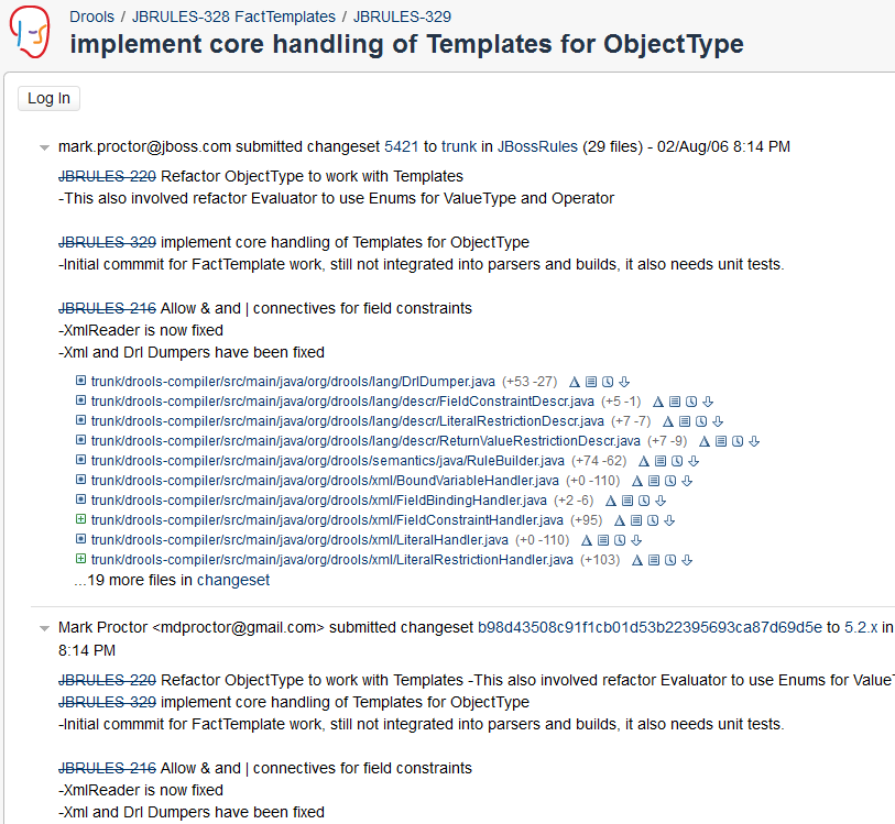 When you commit, make sure you use the correct conventions. The commit must start with the JIRA issue id, such as DROOLS-1946. This ensures the commits are cross referenced via JIRA, so we can see all commits for a given issue in the same place. After the id the title of the issue should come next. Then use a newline, indented with a dash, to provide additional information related to this commit. Use an additional new line and dash for each separate point you wish to make. You may add additional JIRA cross references to the same commit, if it’s appropriate. In general try to avoid combining unrelated issues in the same commit.