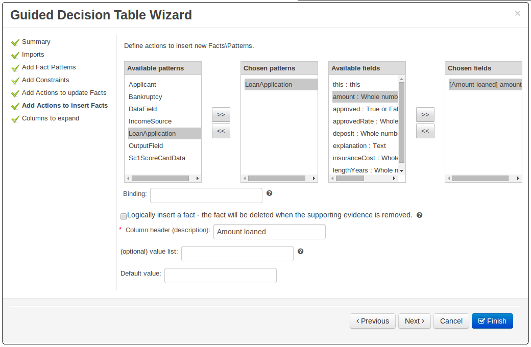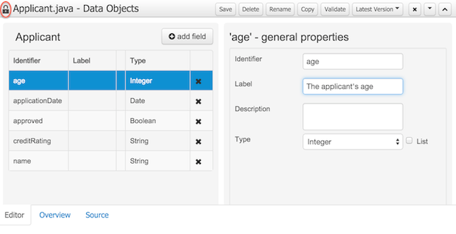 New Data Modeller replaces the declarative Fact Model Editor; bringing authoring of Java classes to the authoring environment. Java classes are packaged into the project and can be used within rules, processes etc and externally in your own applications.