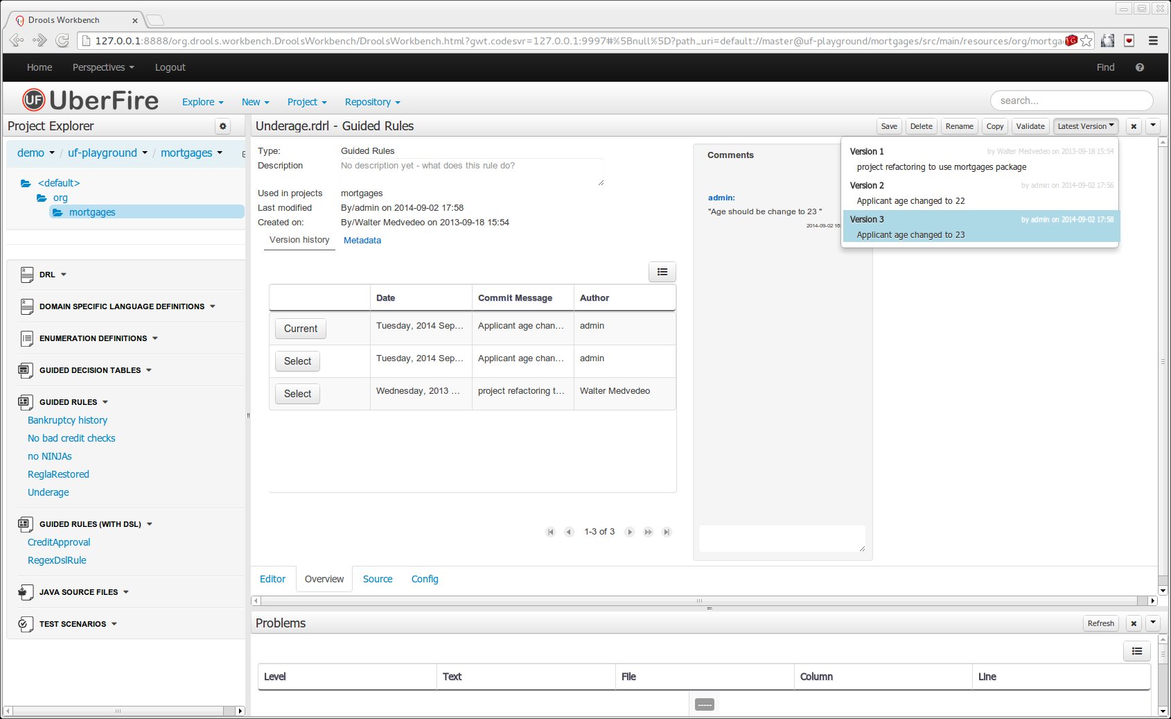 KIE Drools Workbench and KIE Workbench share a common set of components for generic workbench functionality such as Project navigation, Project definitions, Maven based Projects, Maven Artifact Repository. These common features are described in more detail throughout this documentation. |
