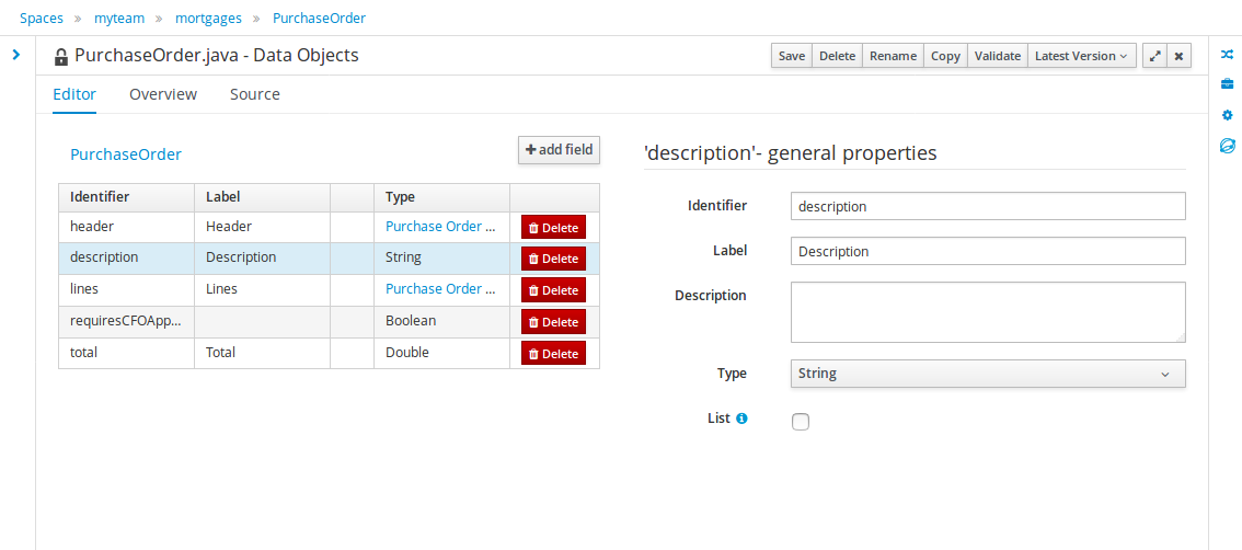 New Data Modeller replaces the declarative Fact Model Editor; bringing authoring of Java classes to the authoring environment. Java classes are packaged into the project and can be used within rules, processes etc and externally in your own applications.