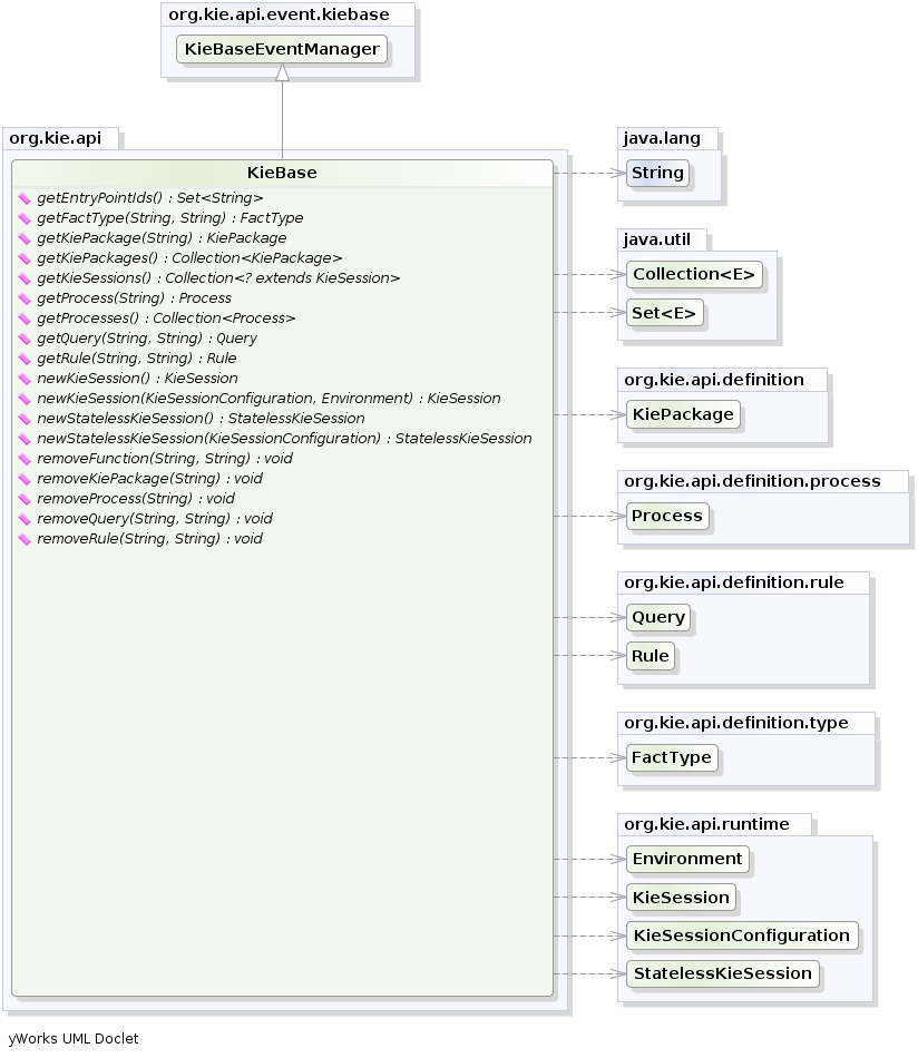 It is possible to include all the KIE artifacts belonging to a KieBase into a second KieBase. This means that the second KieBase, in addition to all the rules, function and processes directly defined into it, will also contain the ones created in the included KieBase. This inclusion can be done declaratively in the kmodule.xml file