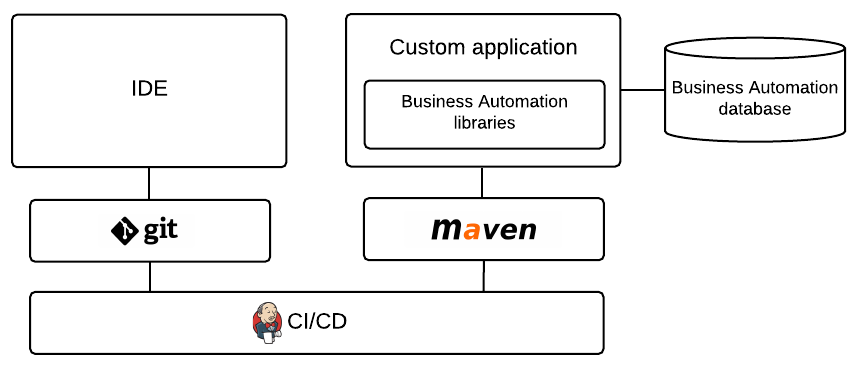 Projects can be built with Maven and installed to the local M2_REPO or remote Maven repositories. Maven is then used to declare and build the classpath of dependencies, for KIE to access.
