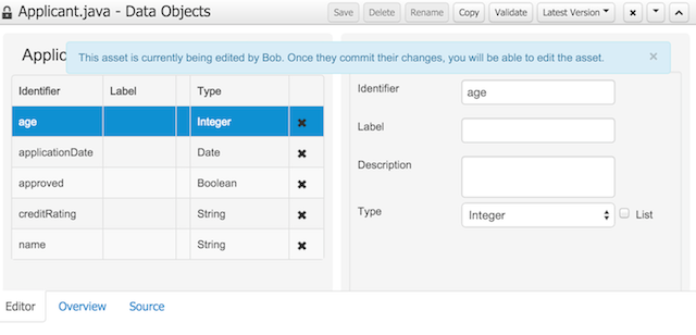 New Data Modeller replaces the declarative Fact Model Editor; bringing authoring of Java classes to the authoring environment. Java classes are packaged into the project and can be used within rules, processes etc and externally in your own applications.