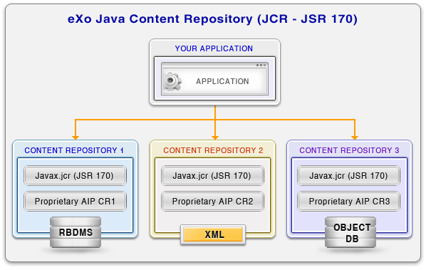 eXo fully complies a JCR standard JSR 170; therefore with eXo JCR you can use a vendor-independent API. It means that you could switch any time to a different vendor. Using the standard lowers your lifecycle cost and reduces your long term risk.