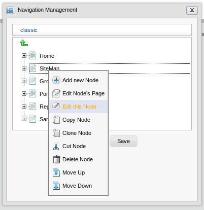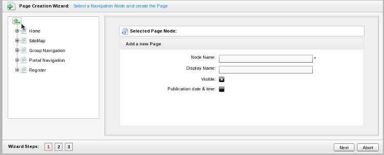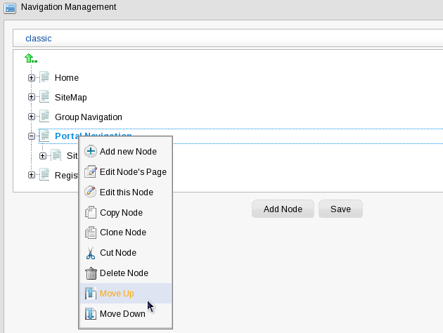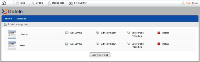 Portal navigations are menus that contain hyperlinks to other parts of a Portal. They can help users to visualize the structure of a site. The default navigation menus in GateIn 3.0 are located in the Toolbar (Section 2.3, “Toolbar”).