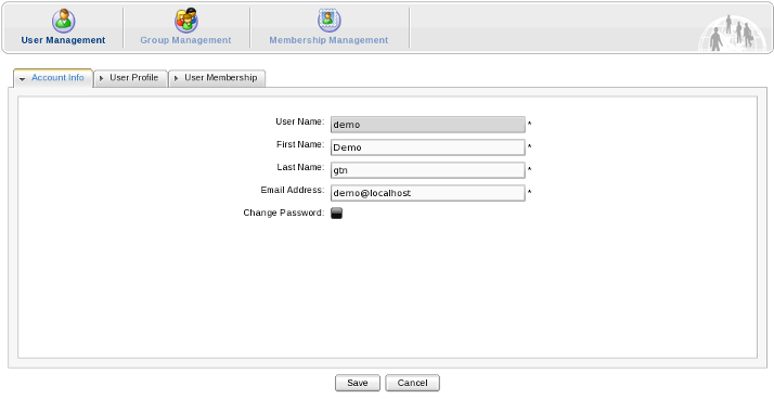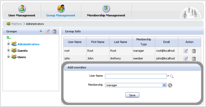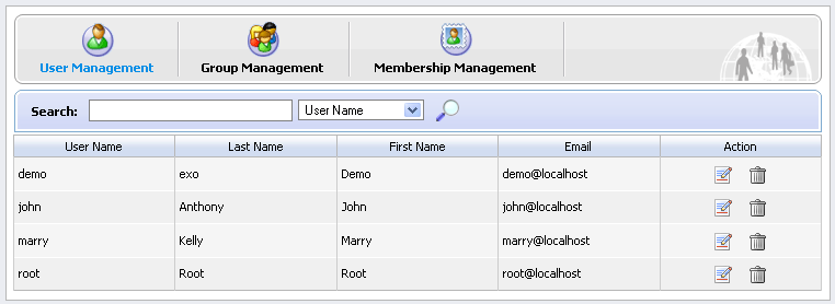 The Organization Portlet is used to manage user information, groups of users and groups memberships.