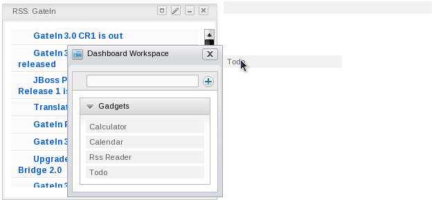 For more information about the gadgets shipped by default with GateIn 3.0, please check out Section 3.3.1, “Using the Dashboard Workspace”