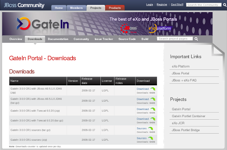 GateIn downloads: www.jboss.org/gatein/downloads.html