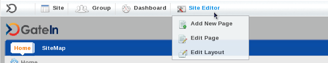 This navigation appears as either Site Editor or Group Editor depending on the administrator's location within the portal.