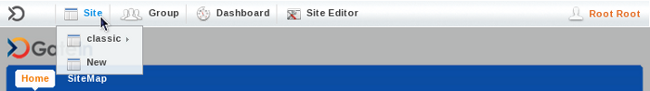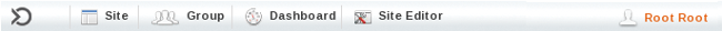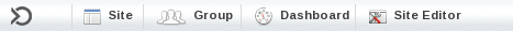 When in areas of the portal displaying content, the navigation shows as Site Editor and in areas of the portal pertaining to users, the navigation shows as Group Editor.