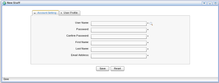 Click the 'find' icon beside the user name field to check whether the chosen username is available.