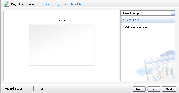 Click Next. On the next screen you may define a page layout out of existing templates.