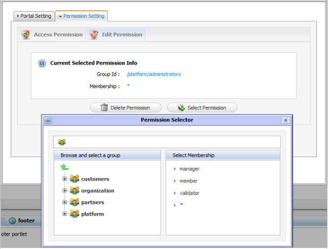 The portlet permission level allows users to create a page by dragging and dropping portlets into a page. Some portlets are only used for administrators while some are used for individuals thus administrators have to set the appropriate access permissions.