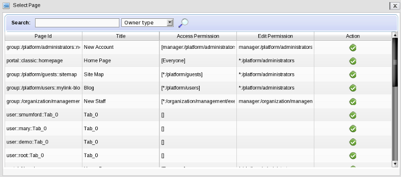 The portal permission level includes all pages within the portal. Therefore, a user with the access permission type can view (but not edit) all the pages within the portal. A user with edit permission at the portal level, can change any page in the portal.