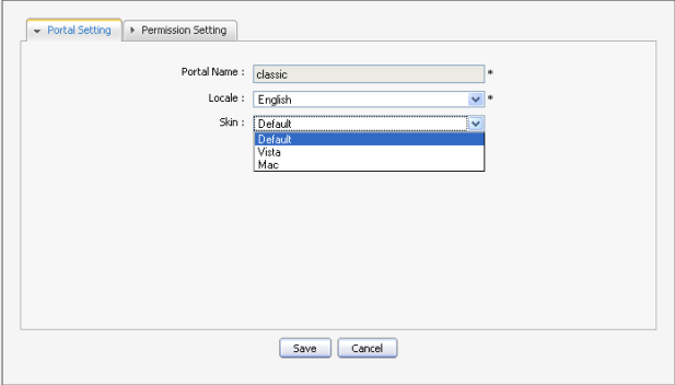 The Star Toolbar Portlet is used to change the default language, the skin of the portal or to sign out.