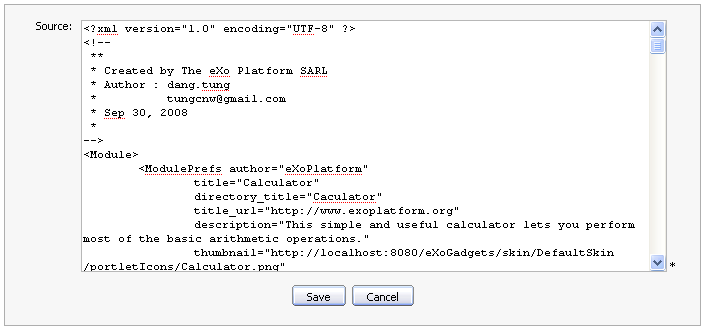 field with the xml code of the new gadget.