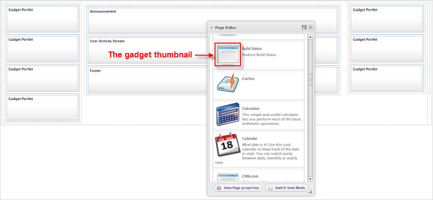 The gadget thumbnails are displayed in the Page Editor window when you edit a page. The thumbnail image size needs to be consistent for all gadgets in the list. The current size (in eXo Platform 3.5) is 80 x 80px, so you should select an image of this size in PNG (preferred), JPG or GIF format for your gadget thumbnail.