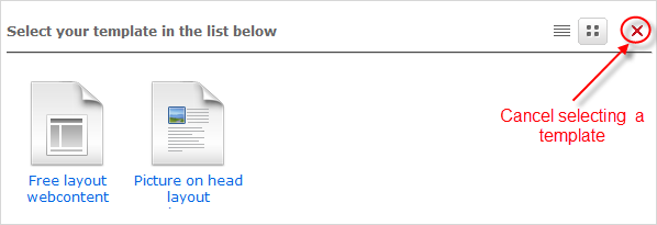 | Cancel selecting the content template and back to the previous page. |