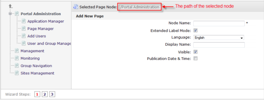 | Selected Page Node | The path of the selected node to add a new sub-page. |