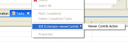 Right-click on our popupMenus extension and select new->viewerContribution. Set the id to Example2ContextMenus.viewerContribution2 and the targetID to org.eclipse.ui.views.TaskList