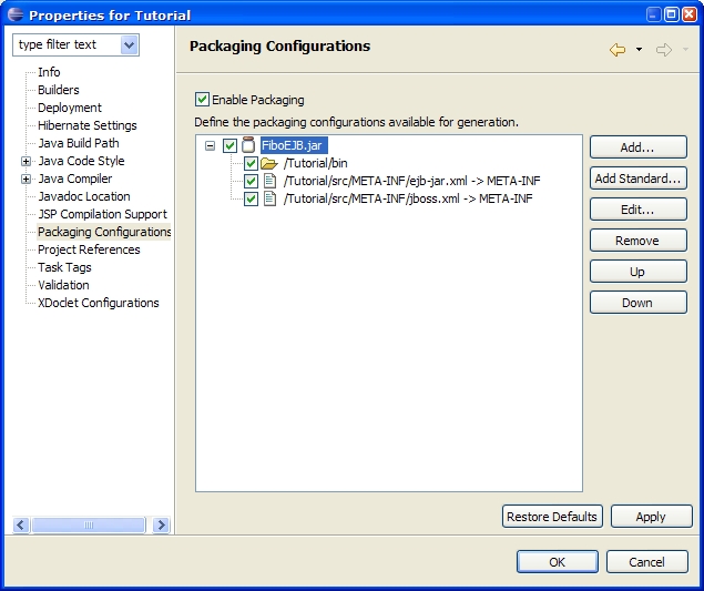 | The packaging configuration for the FiboEJB-client.jar is now complete. | ![]() |
